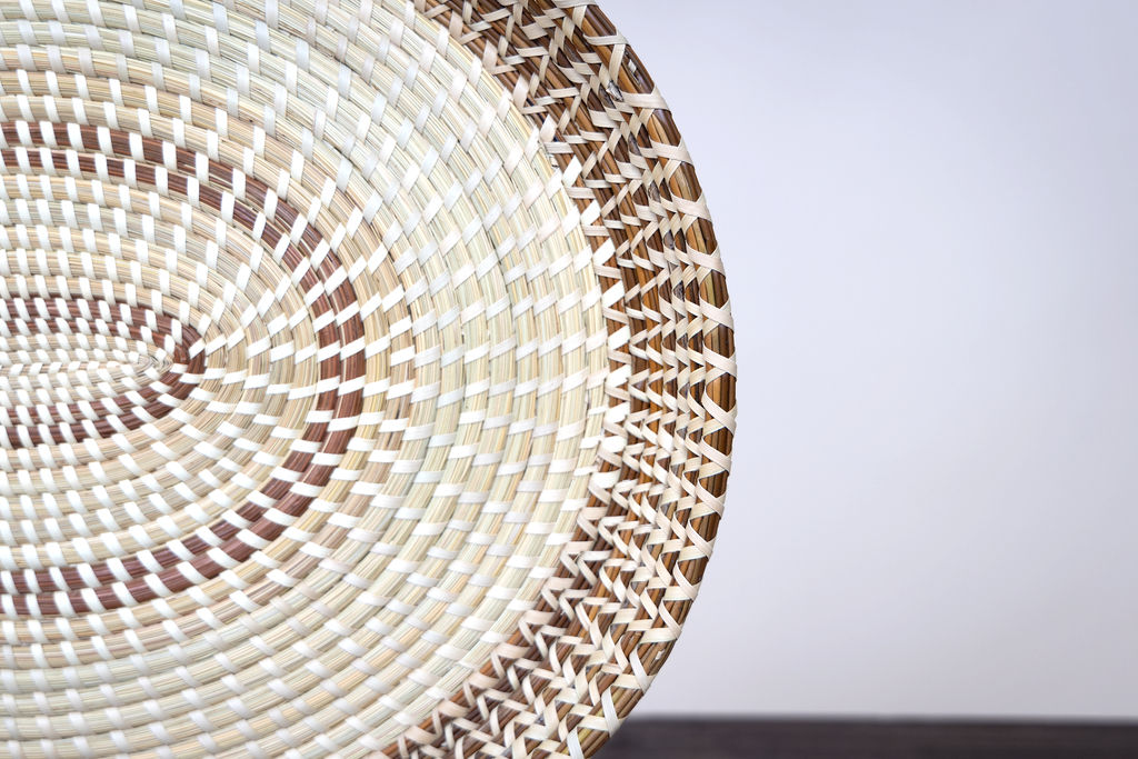The Modern Traditional Serving Tray combines classic craftsmanship with contemporary design elements. Featuring a traditional teepee edge and a braided edge for a modern twist, this serving tray is both functional and decorative. Perfect for serving food, displaying items, or as a centerpiece, this tray adds elegance and charm to any setting. Its intricate weaving and natural tones showcase the beauty of traditional techniques while embracing a modern aesthetic.